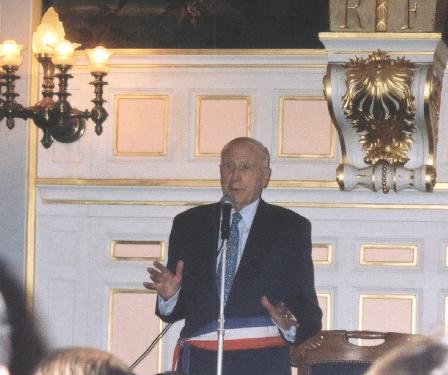 We were seated in the Salon where the ceremony was to take place and there were about a 100 or 130 people in attendance. The Salon like the ball room was very ornately decorated with gilt figures of nymphs and cherubim along the ceiling. A four piece group was playing various types of wedding music. Eventually the ceremony began and the family procession started. Corrine, the bride, was wearing a lovely pale pink satin suit and a spectacular hat! The ceremony was somewhat chaotic but very nice and there was impromptu joking and banter but all in French of course! At the conclusion of the ceremony, there was no receiving line; the bride and groom were just congratulated by the closest family members seated up front. Everyone else drifted over to the ballroom for appetizers and drinks. The appetizers were very good -- David’s favorite part of any formal event! Unlike in American weddings, there were no toasts. The best man, Yves’ friend Louis from childhood, sang them a song in a very good imitation of Louis Armstrong. The band was very good and played a nice set of pop and International world tunes including some arabic music. The drummer was Morrocan and played a special Morrocan hand drum during the arabic music set. At 6pm things were winding down and