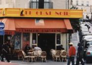Our first glimpse of France was the landscape of the Charles de Gaulle airport viewed through the plane window. As we came in for the landing, it was possible to see wildflowers and grasses growing on the little islands of greenery among the runways. Cottontailed rabbits hopped around the miniature meadows. The section of Charles de Gaulle that we landed at was new and still under construction—you could smell fresh wood and new flooring. After a very long walk, we found the exit where we met the shuttle that took us to our apartment in Montmartre. The shuttle driver was friendly but drove like a madman. We had a riproaring ride through the French countryside, through a small town called Gosselle. Fields and old-fashioned houses with wooden shutters whizzed by. When we finally got into the city, Paris was just as Kathy expected—tall stone buildings with mansard roofs, little shops and cafes on the street level. Driving into Montmartre we passed the Moulin Rouge, and to Kathy’s surprise, Le Chat Noir!